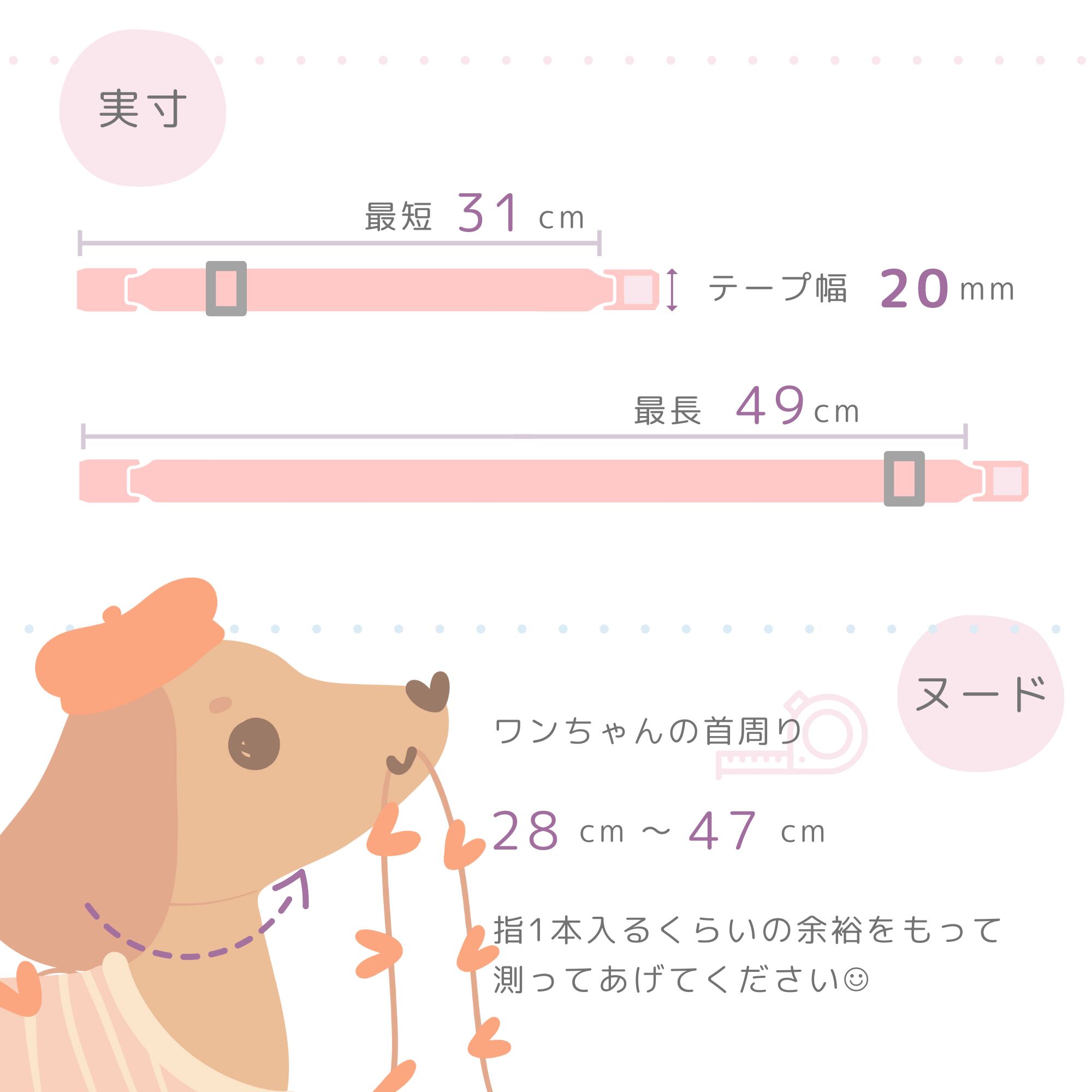 実寸 31~49㎝ | 首周り 28~47㎝ |テープ幅 20mm | 長さ調節可能タイプ◎