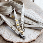 ラメ糸刺繍のドット柄リネンリボン(ナチュラルカラー) | 下地PPテープ |ワンタッチフロントリリースバックル |ナスカン|ねじれ防止回転カン