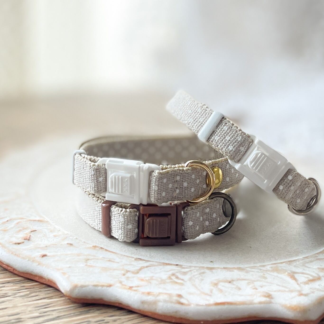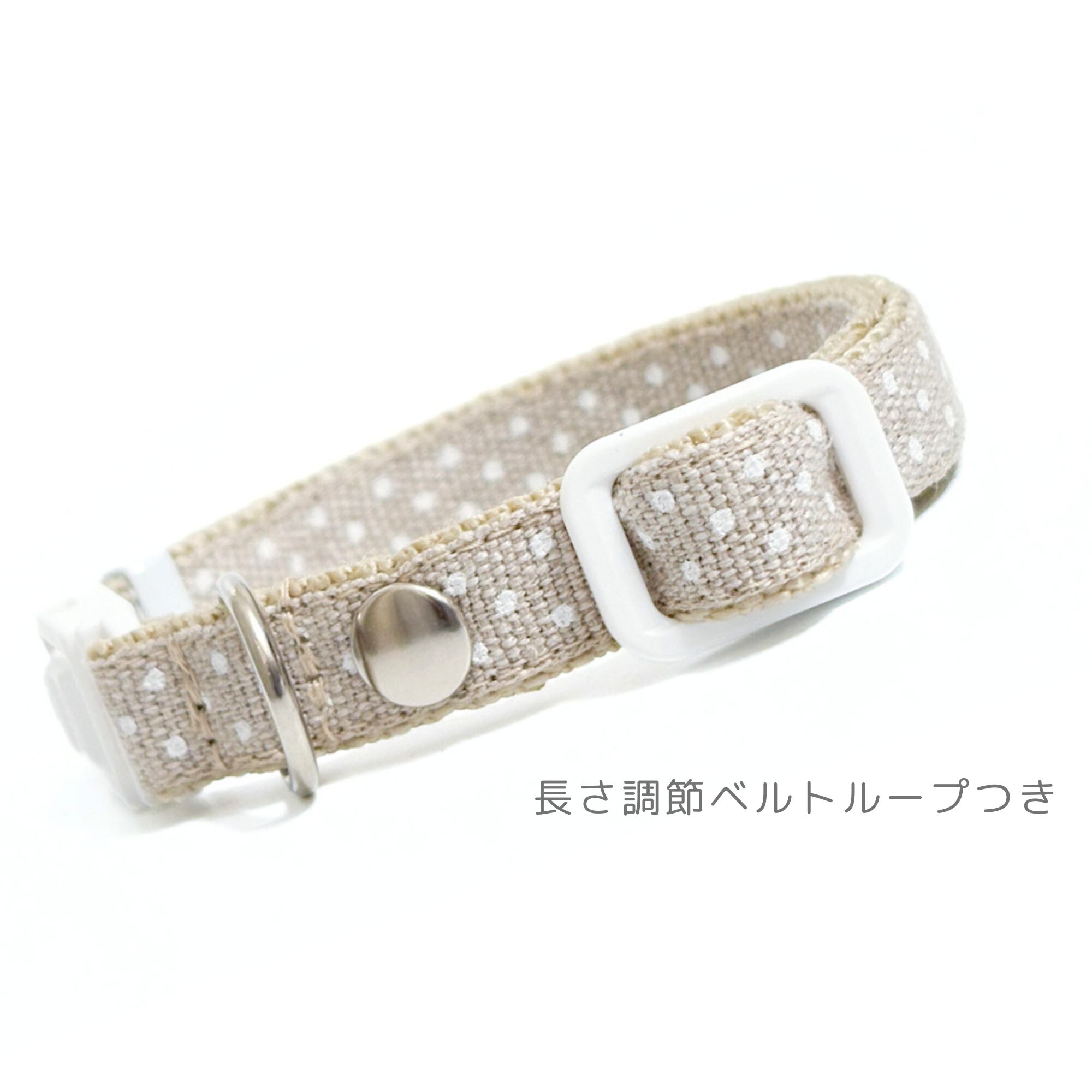 ちいさな白いドットプリントのリネンリボン | 下地PPテープ |ワンタッチフロントリリースバックル |Dカン