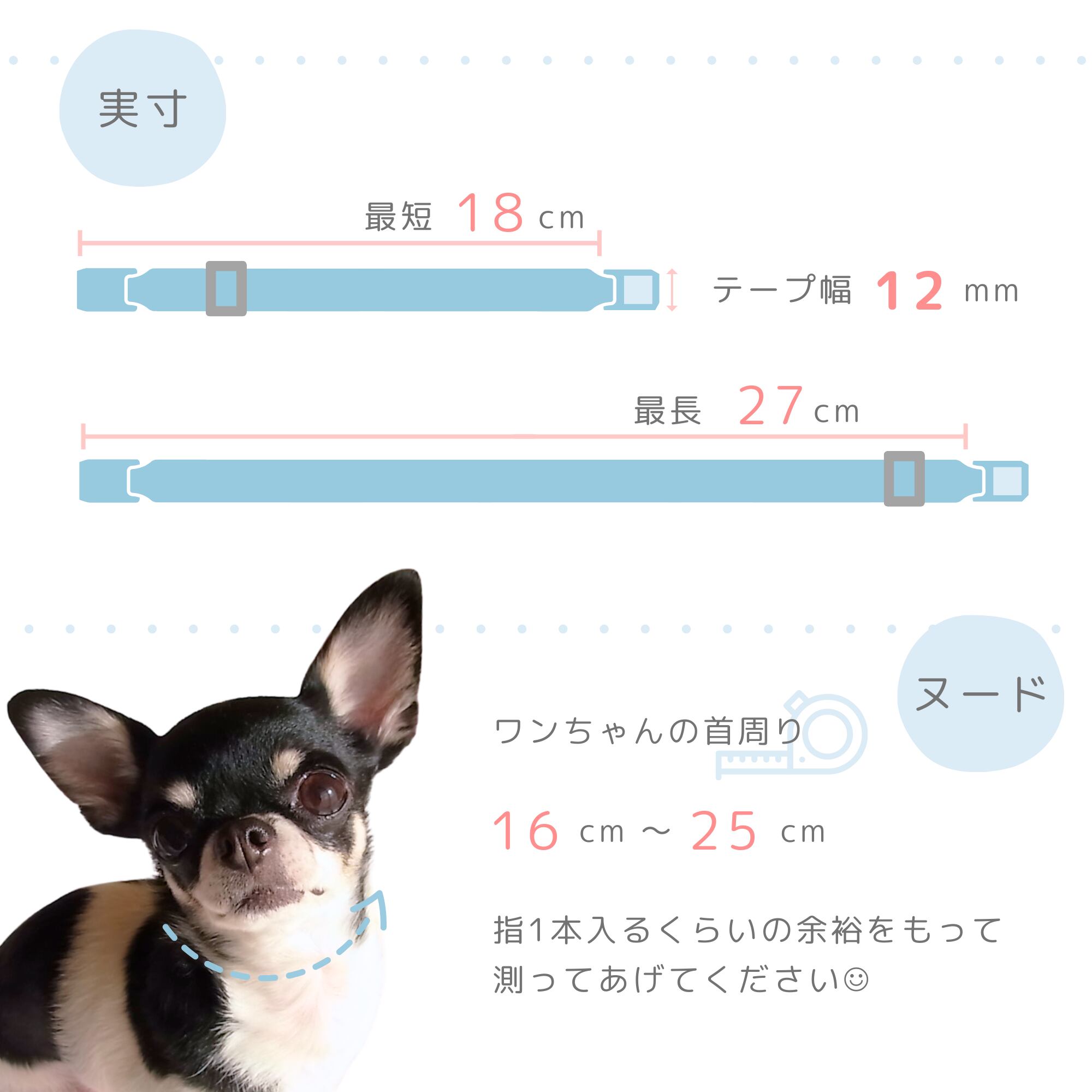 実寸 18~27㎝ | 首周りヌード 16~25㎝ |テープ幅 12mm | 長さ調節可能タイプ◎