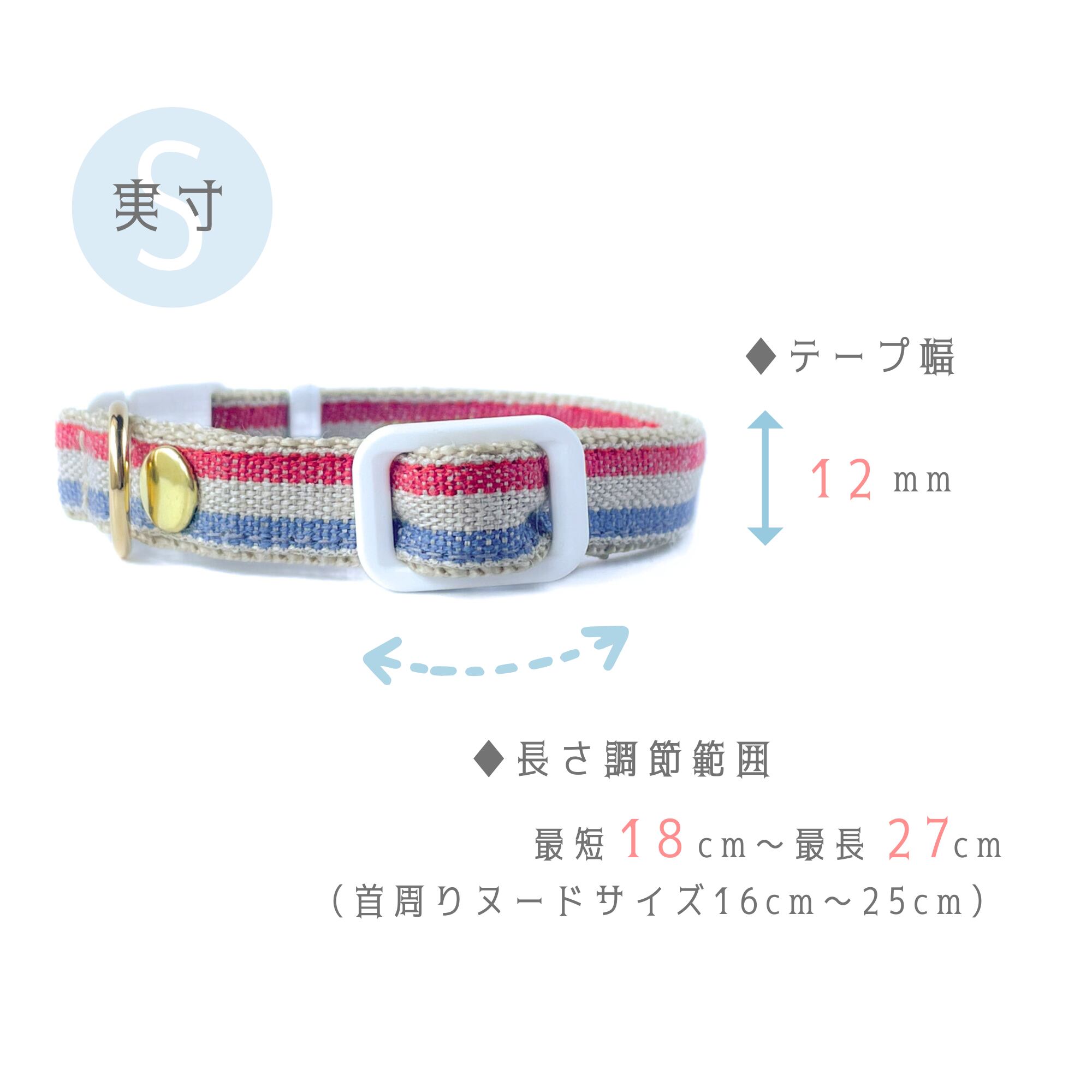 実寸 18~27㎝ | 首周りヌード 16~25㎝ |テープ幅 12mm | 長さ調節可能タイプ◎