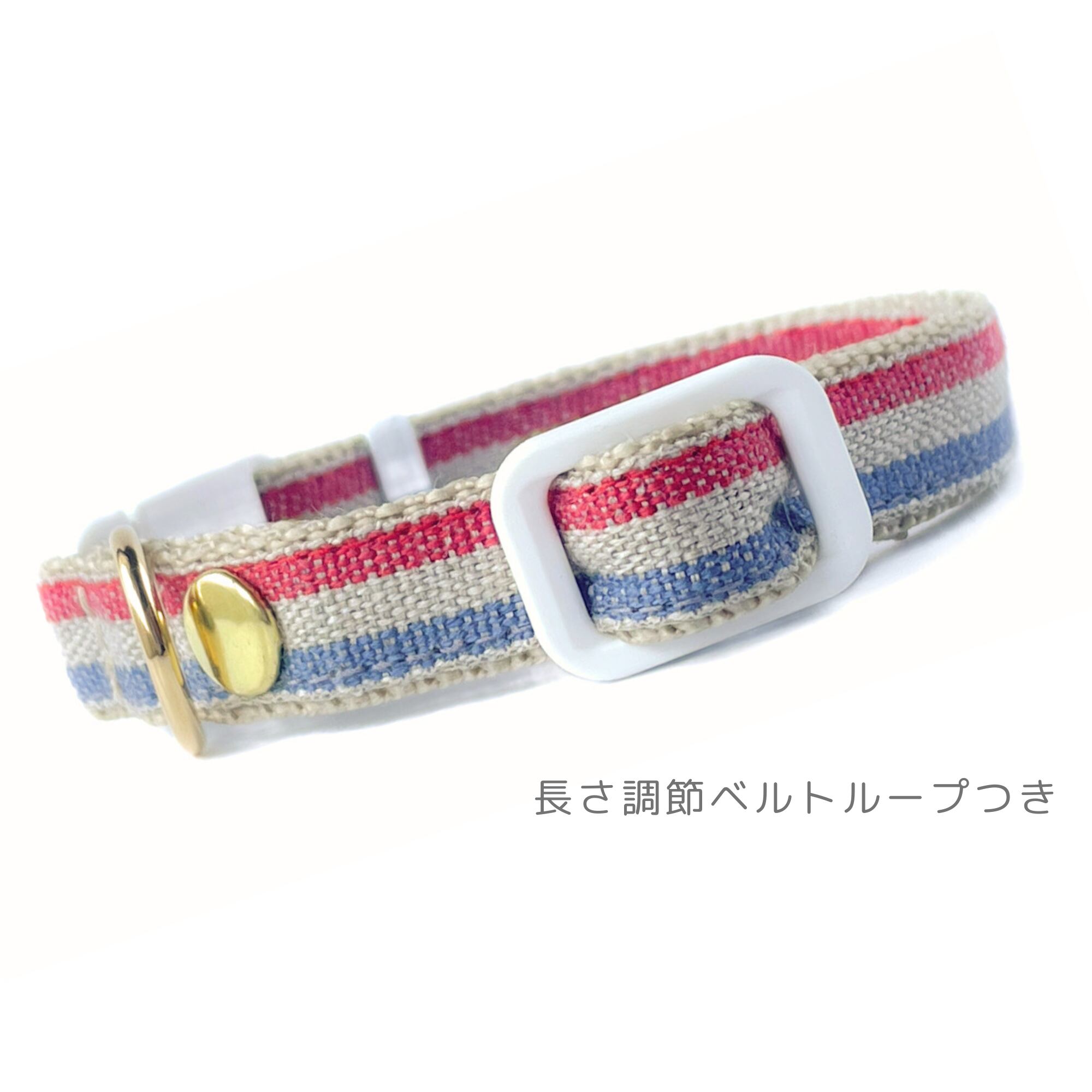 トリコロールカラーの国産リネンリボン | 下地PPテープ(ベージュ) |ワンタッチフロントリリースバックル |Dカン